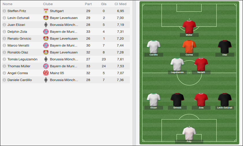 Dos 11 titulares habituais da equipe, apenas quem jogou de volante (Feijão, Ihm e Jenttzsch) não conseguiu média 7 na temporada. O intruso dessa lista foi o jovem Trzolek (19 anos), formado pelo Osnabruk, mas que será considerado formado pelo Gladbach ao final da próxima temporada.