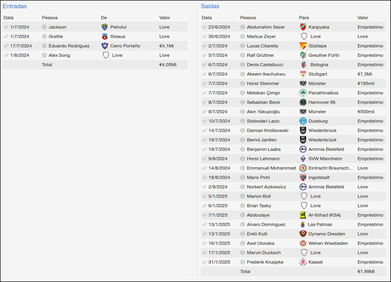 Os títulos no futebol turco abriram a possibilidade de ir para um time aparentemente bem estruturado e de uma liga muito forte. O início foi surpreendente e muito animador, cheguei a imaginar que lutaria pela Bundesliga até o fim e não descartei um título, mas faltou sorte - ou qualidade no elenco. Enfrentar o Bayern é sempre difícil e mesmo quando entram com quase todo o time reserva eles são favoritos. Chegou perto de vencer na Copa da Alemanha, mas bastou colocarem alguns titulares em campo e o sonho de sair da fila foi embora. O mais importante é a temporada positiva, cumprindo as expectativas da direção, o que garante Kemel Demir mais um tempo no comando do time, ao contrário dos seus antecessores.