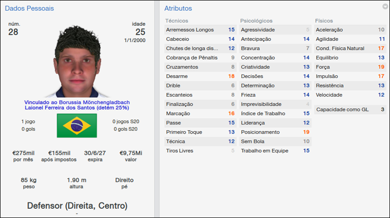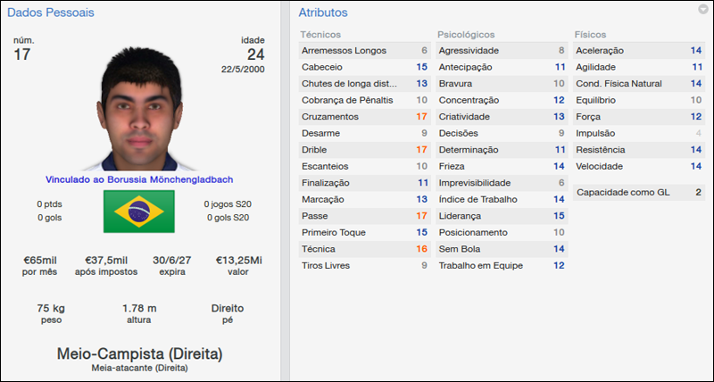 Na outra lateral tinha dois candidatos, ambos favoritos do clube, mas para mim o titular desde o início era o argentino Juan Elizari que se mostrou um excelente lateral (jogando como Ala Completo) ao término da temporada tendo feito gols, alguns de falta e outros de bola rolando, e assistências, algo que não tive nas 11 temporadas na Turquia. Ao final da temporada, Elizari fez 6 gols, 6 assistências, 2 MeC, média 7,20.