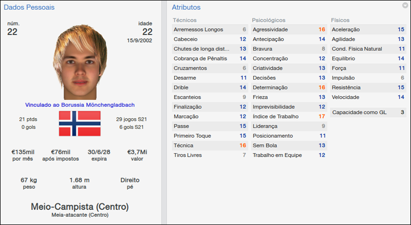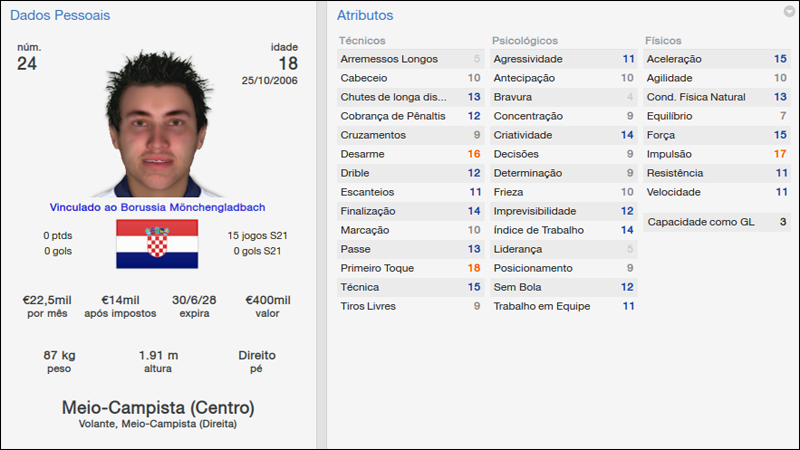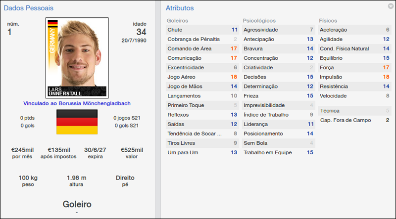Geralmente não mexo nas instruções individuais dos jogadores. Deixo no que vem por padrão. Se não estou satisfeito com ela, vejo se existe outra que possa me atender. Somente se não houver, vejo qual instrução posso mexer para que ele se encaixe melhor na equipe.
