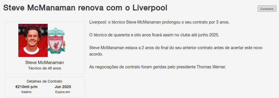 Que legal que acabei te motivando a ficar pela área e curtir alguns outros saves aqui. Espero que tenha te motivado a pegar mais gosto pelo jogo ainda. Poxa, acho que vou demorar a acertar a mão de novo. Com essa renovação e com o tempo parado duvido que o Liverpool alce grandes vôos nessa temporada.