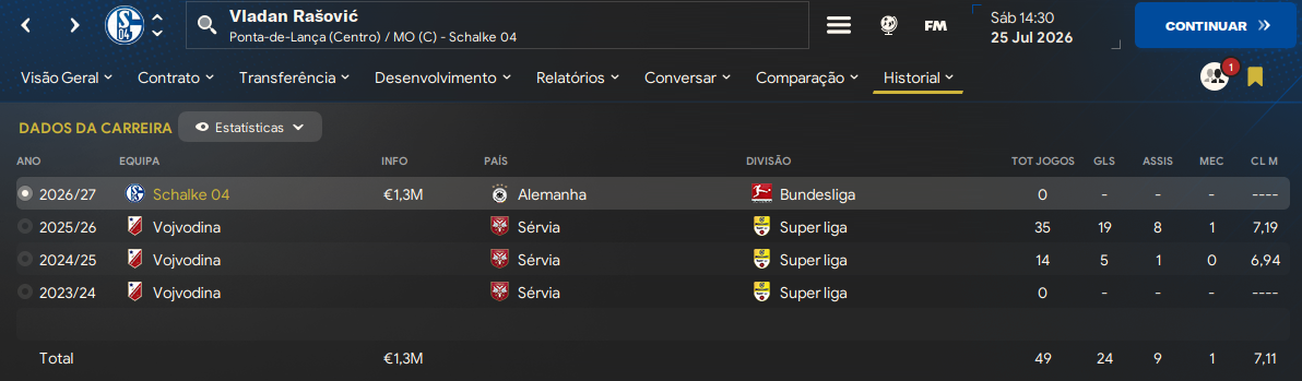 Diretor Geral Leho. Postado 12 de Junho Diretor Geral Denunciar Postado 12 de Junho Em 10/06/2025 em 08:50, Masca disse: 3ª temporada: Vaguinhas na Champions, dívida indo embora, quase um título e janela de reforços muito boa. [...] Excelente temporada! Faltou o caneco na Copa, perdido incrivelmente após uma goleada ainda mais incrível em cima do todo poderoso Bayern hahahaha. Mas o FM tem dessas, né? Acho que todo mundo já passou por algo similar. Na Bundes' uma ótima classificação pra Champions vai ajudar a sanar de vez o problema financeiro. E porra, gostei demais dos reforços! Esses newgens que tu trouxe foram todos prospectados pelos olheiros somente? Ou tem dedo seu aí também rs, rs? Rasovic é um monstrinho, meu Deus. No mais, acho que já na próx. temporada dá pra pensar em disputar o caneco da liga, hein? Tá se reforçando mt bem pra isso. p.s: como andam os medalhões? Tão jogando ainda? 21 horas atrás, Masca disse: Booooa @Leho. Excelente primeira temporada, principalmente com um clube que nem era um dos candidatos a acesso. Obrigado amigo! Me surpreendeu demais também. 6 horas atrás, Danut disse: Parabéns pelo acesso @Leho.. Campanha muito boa mesmo, e um ataque avassalador. Considerando quantos gols marcou até me surpreendeu a pequena distância do segundo lugar. Mas o que importa mesmo é que foi campeão. [...] Problema é que esses gols ficaram concentrados em algumas goleadas né, e aí eles fizeram falta em jogos mais difíceis, contra o Dresden p. ex. que era o grande candidato ao acesso e ao título também. E assim, quando se tem uma disparidade tão grande entre os elencos, só de eu ter batido campeão já é surpresa o suficiente, porque quem vinha atrás tinha mt mais força de plantel do que eu hahaha. 6 horas atrás, Danut disse: [...] Jogando da forma correta a primeira temporada do save, rs. (é um jogo single player, obviamente que cada um faz o que quer, mas eu sempre acho muito mais interessante ver como o pessoal se sai sem contratações na primeira temporada) Hahaha, pior que eu lembrei de você e de alguns outros daqui do fórum mesmo, que falam sobre bloquear as transferências na 1ª temporada pra aumentar a dificuldade e o desafio. Vou aproveitar esse comentário pra fazer um desabafo/confissão aqui: eu tenho alguns hábitos no FM desde que comecei a jogar lá atrás (como qualquer outro claro), hábitos esses de quem nunca foi um jogador HARD como vejo que vários daqui o são. Por isso nunca me liguei tanto assim nessa questão de deixar o jogo mais desafiador ou mais difícil, até porque em grande parte dessa minha vida de manager eu sequer passava da 3ª temporada dentro de um save, ou seja, não tava mt afim de dificultar as coisas hahaha. Depois de ficar velho e passar a ler mais histórias por aqui (coisa que eu também não o fazia quando mais jovem), passei a reconsiderar vários desses meus hábitos, e tentar jogar o jogo de forma diferente, até pra me motivar e tals. Começou com a questão da utilização dos jovens da base, coisa que eu nunca fazia haha. Depois fui introduzindo outras dicas dos amigos daqui, vendo o que seria legal pra aumentar o meu desafio sem deixar impossível de se jogar também, rs. E cá estou, conseguindo finalizar uma temporada inteira sem fazer nenhuma contratação, num clube de terceira divisão da Alemanha. Alguns anos atrás eu jamais passaria perto de jogar assim, hahaha hoje estamos aqui! E ah! Obrigado pela motivação indireta nesse caso. Citar