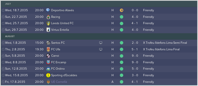 Fique tranquilo, @gbonanni, ainda há muito de FC Andorra para vocês, hehehe. Só o tempo nas últimas semanas que foi mais escasso por causa da faculdade e de uns desenhos, então o pouco tempo que me sobrava optei por jogar o save da Copa do Mundo que é mais fluído e necessita de menos detalhes. Mas espero atualizar ainda hoje ou nessa semana mesmo com os primeiros dois meses da temporada nova.