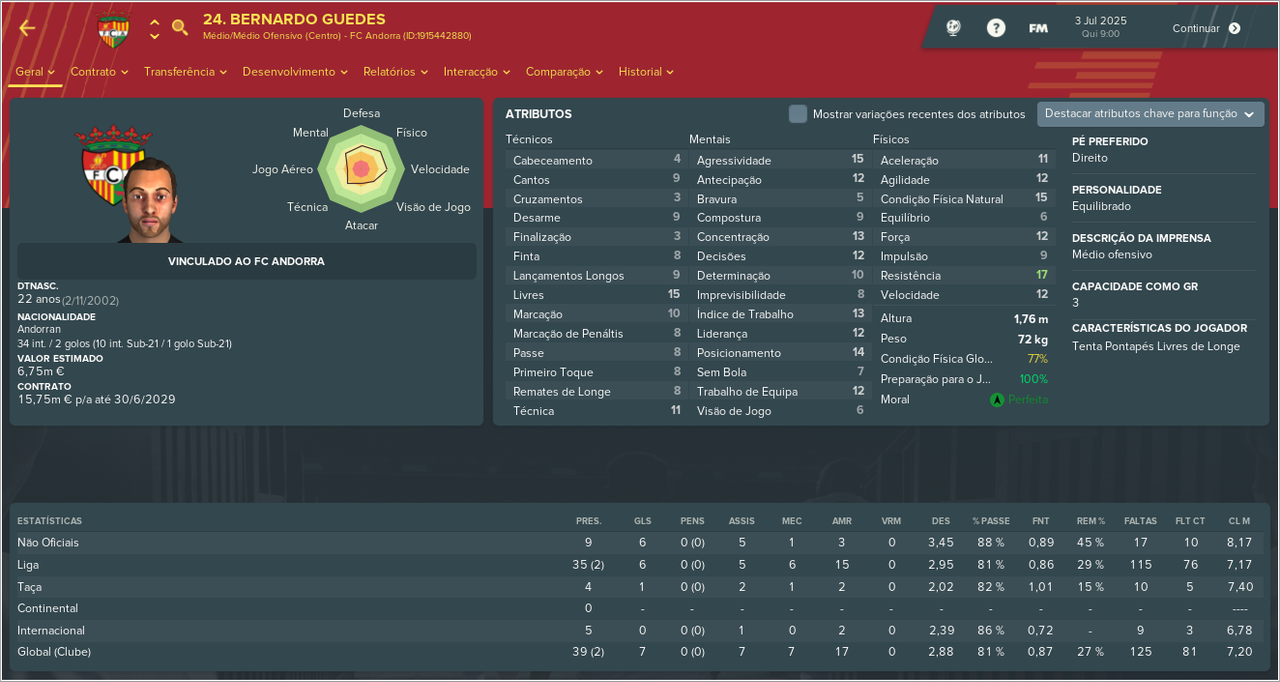 São questões apenas para me nortear um pouco mais, pois estou muito empolgado com o jogo e espero contá-lo até tornar o FC Andorra uma equipe que luta de igual para igual com as equipes da elite.
