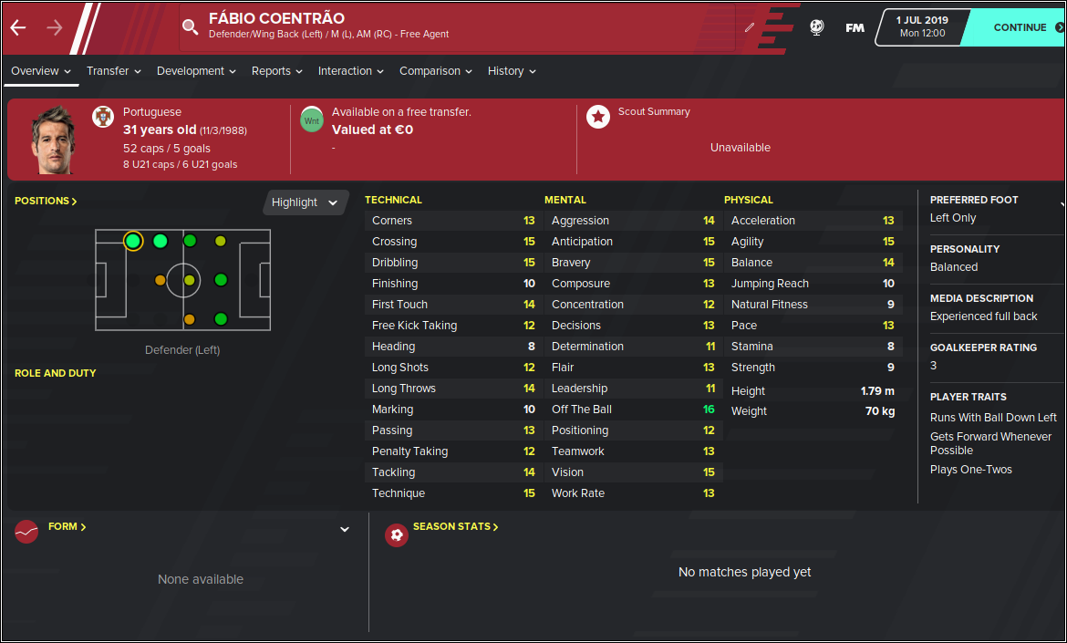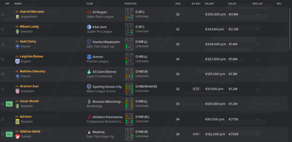 Já nas laterais, há opções como Gaël Clichy, com boas passagens por Arsenal e Manchester City, Adriano, campeão de tudo com o Barcelona, e Fábio Coentrão, que jogou por muitos anos no Real Madrid. Outro destaque é o croata Ivan Strinic, que estava afastado por um problema cardíaco e escolheu Andorra para reiniciar sua carreira.