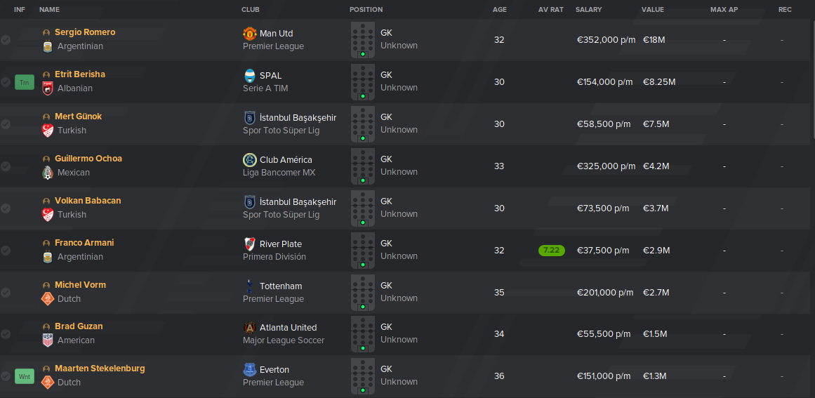 Para o gol, temos nomes como o vice-campeões mundiais, Sergio Romero, ex Manchester United, e Maarten Stekelenburg, ex Everton, e Franco Armani, que venceu tudo e mais um pouco com o River Plate nos últimos anos.