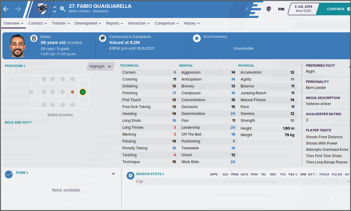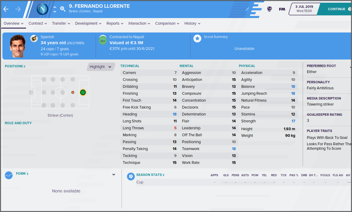 A lista conta com nomes entre 30 e 36 anos, com até mesmo um campeão mundial entre os selecionáveis: Fernando Llorente, campeão com a Espanha em 2010. Outro que chama à atenção é Fabio Quagliarella, que vem de uma excelente temporada pela Sampdoria e em uma decisão surpreendente aceitou fazer parte da experiência em Andorra.