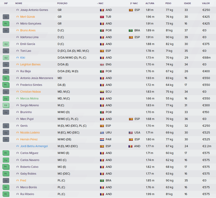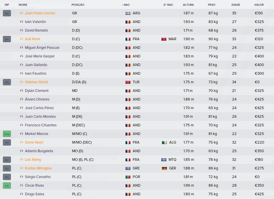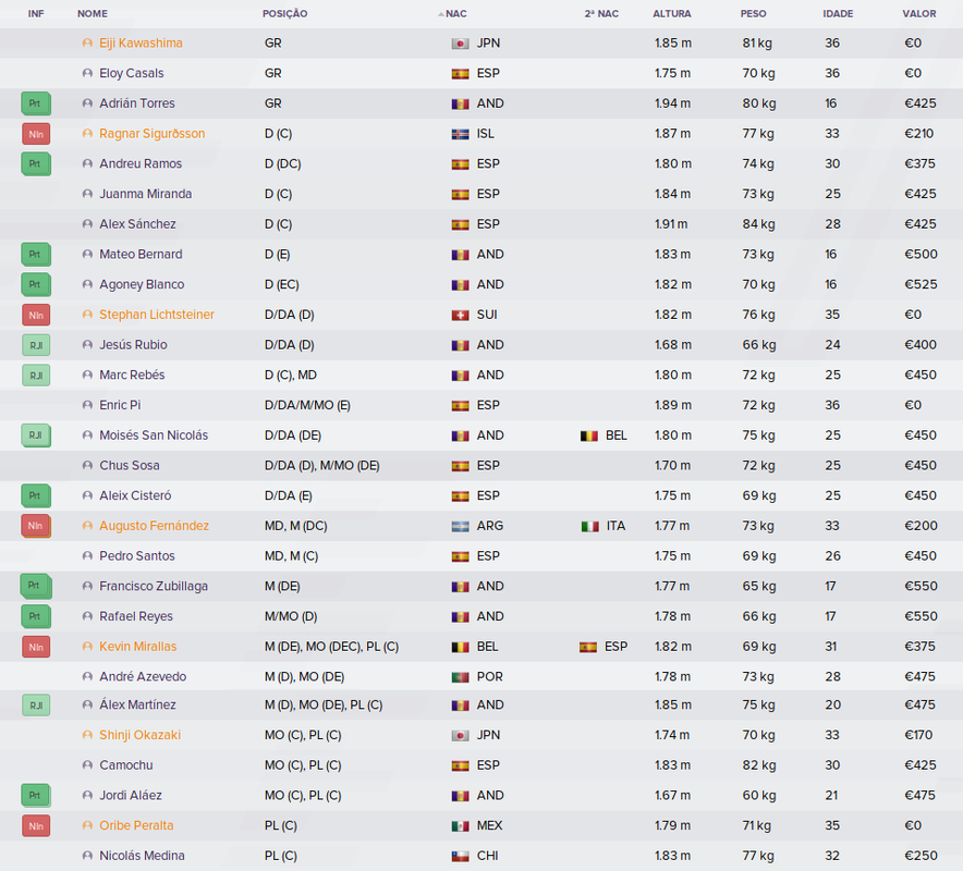 Carai, eu adorei meus uniformes e o meu escudo (que nem sabia qual era). Os do Extremenya, Lusitanos, Escaldes e FC Santa Coloma ficaram lindos também.