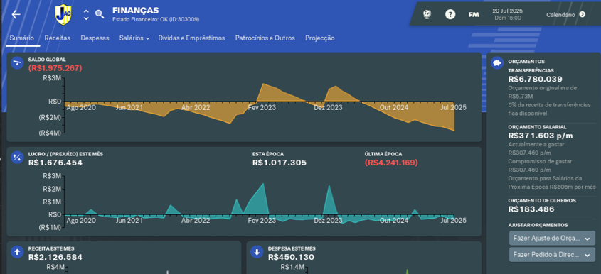 Pois bem resolvi arriscar e hoje venho que deveria ter feito lá no inicio como o @ElPerroMG, mas já estamos na Série C e agora talvez seja muito arriscado fazer assim. Portanto continuarei buscando jogadores externos e baratos se possível mas tentarei diminuir a Folha de pagamentos.