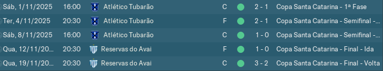 Atlético Tubarão (1ª FASE) I Atlético Tubarão (F) I Atlético Tubarão (C) I Avaí B (F) I Avaí B (C)