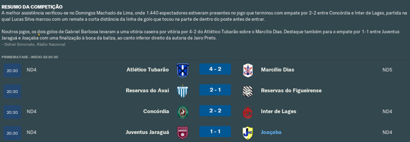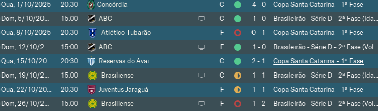 Concórdia I ABC (C) I Atlético Tubarão I ABC (F) Avaí B I Brasiliense (C) I Juventus I Brasiliense (F)