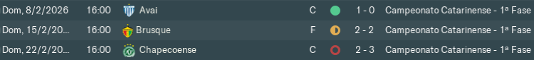 Campeonato Catarinense é legal pois os times são muito diversos dentro da pirâmide nacional, ao mesmo tempo em que parecem muito parelhos. Prova disso é que conseguiu até arrumar uma zebra pra cima do Avaí. E é legal ver que a equipe está se organizando, fazendo boas temporadas, a campanha na Série D passada foi interessante, pena que caiu na primeira fase eliminatória, porém, com a cancha que adquiriu nesse estadual, deve conseguir alçar voos mais altos agora.