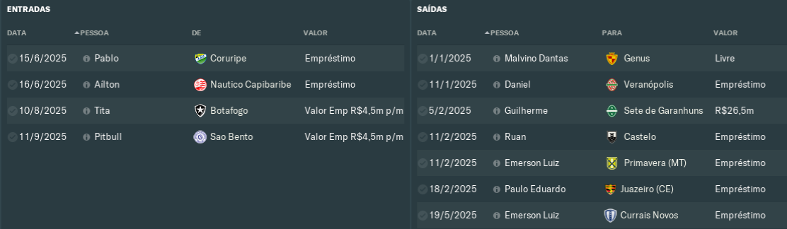 Em novembro 13 jogadores venciam contrato. Apenas 3 renovamos: zagueiro Gustavo e atacante Marcelo, além de novo empréstimo sem custo ao Vasco do atacante Marcio. Com a boa campanha de 2025 e ajuda da Direção injetando dinheiro nossa divida reduziu quase pela metade,emboraas projeções continuem muito pessimistas.Começamos o ano com os 11 titulares (Marcio Titular, Tita não) e alguns da base na reserva. Com reservas bem ruins digamos