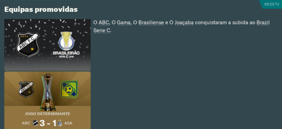 Anapolina - GO: eliminado nas quartas de finais pelo Vila Nova ( que terminou vice ao perder para o Goiás). Na ultima Série C eliminado nas quartas de finais pelo campeão Boa Esporte.
