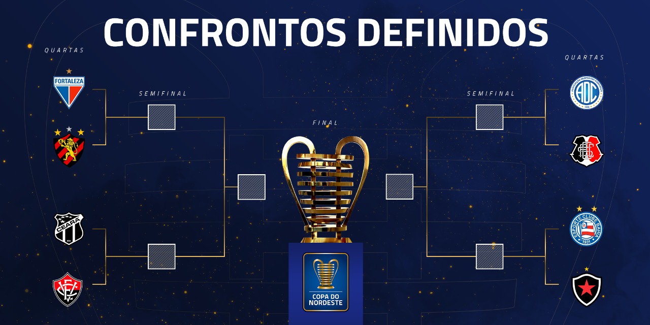 Diretor Geral Leho. Postado 25 de Julho 2020 Diretor Geral Denunciar Postado 25 de Julho 2020 E hoje tem os confrontos das 4as-de-Final da Copa do Nordeste. Todos os jogos acontecendo hoje mesmo, no sábado, com transmissão do SBT na TV aberta inclusive (Youtube e FoxSports também transmitem). "Super-sábado" de futebol nordestino, heheh! Tem jogo bem interessante aí pra ver, destaco o confronto mais pesado dessa fase que é Fortaleza x Sport, e no mesmo horário um Ceará x Vitória também promissor. Mais à noite tem o Bahia, favorito contra o Botinha da PB. O chaveamento tá assim: Tópico pra aglutinar os comentários das partidas.