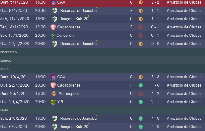 b) Os amistosos e o estadual que ficou no quase