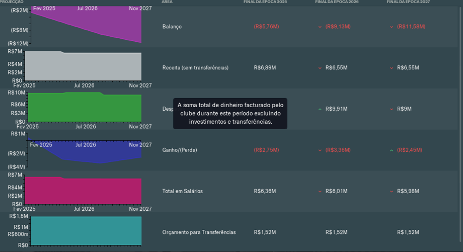 Temporada 2027 - Apertura: Primeiro semestre de relativa pressão: ainda não consigo cumprir as promessas. Fiasco na Libertadores e nacional razoável, mas sem titulo