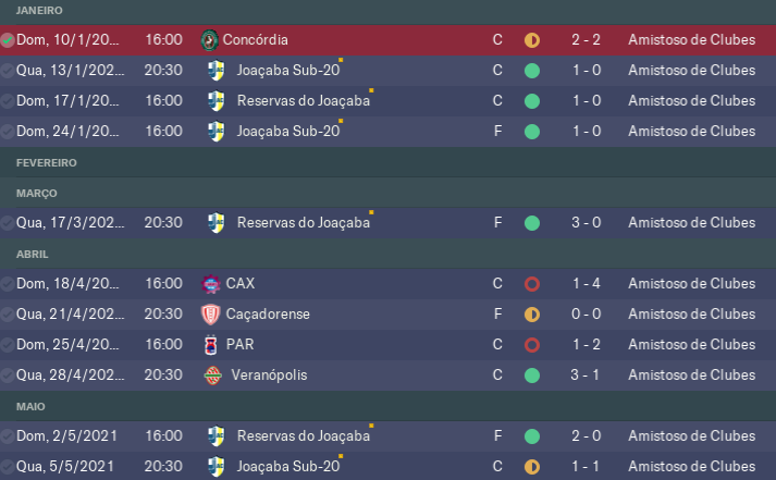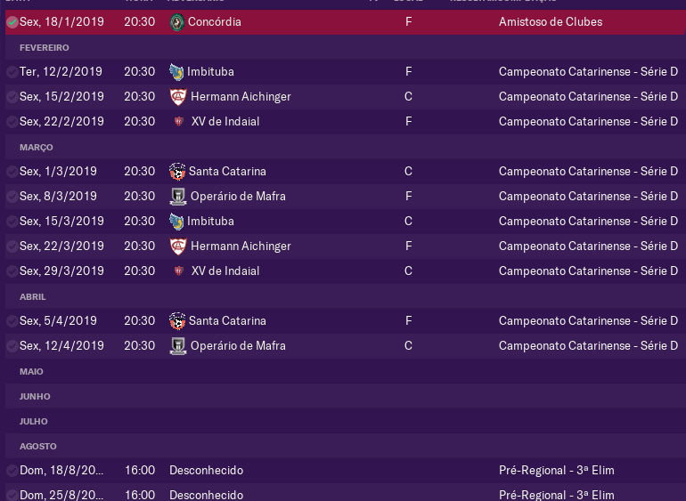 Passado o estadual, teríamos 4 meses sem jogos. Novamente apenas Concórdia, Caçadorense e Ypiranga, além de nossas camadas mais inferiores aceitaram fazer amistoso. Foi uma overdose de jogos. 15 jogos em 4 meses.