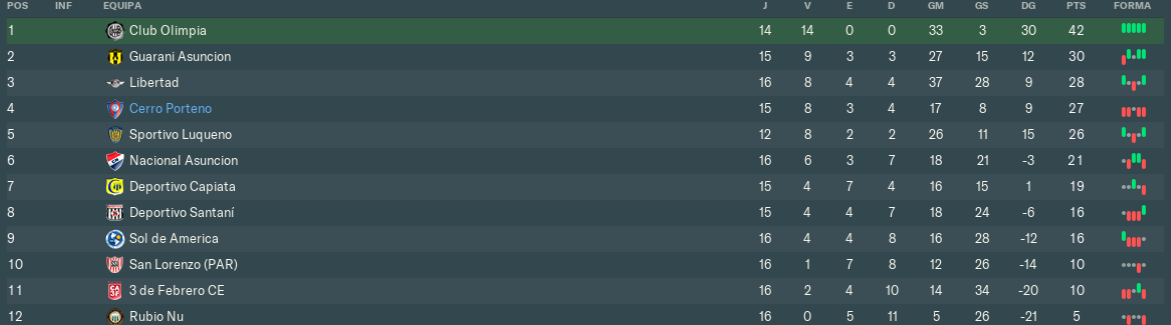 Mas no Nacional, faltando 7 rodadas para o fim do Apertura também estava ficando cada vez mais impossível conter a campanha avassaladora do rival Olimpia.