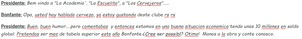 A seguir Bonfante vai para o exterior e parte da organizada do BOA Esporte protestar chamando o treinador de mercenário! Bonfante diz "tá de BOA" quanto a isso e que tudo são apenas negocios.....rs rs