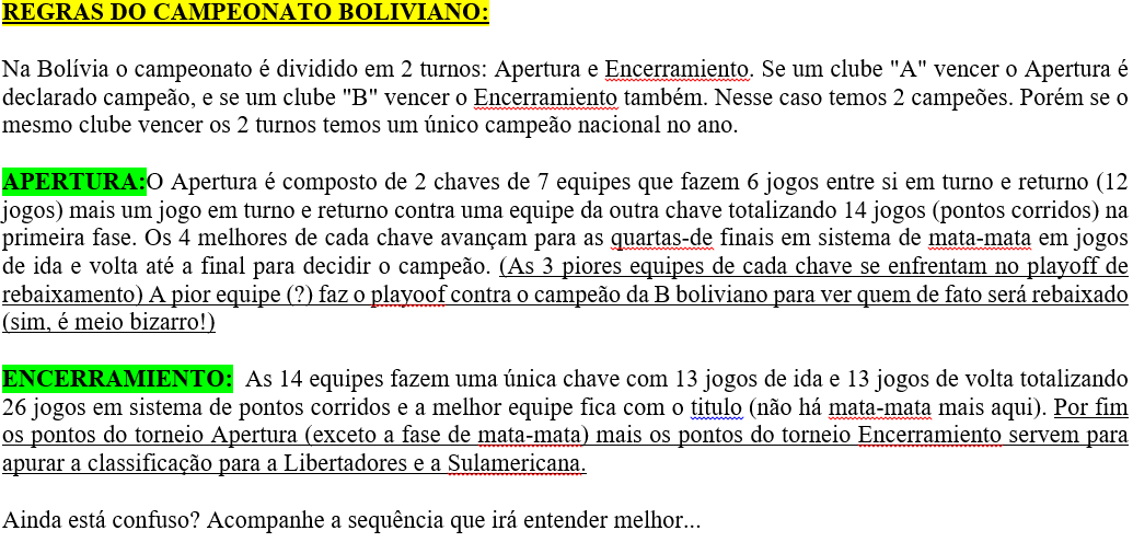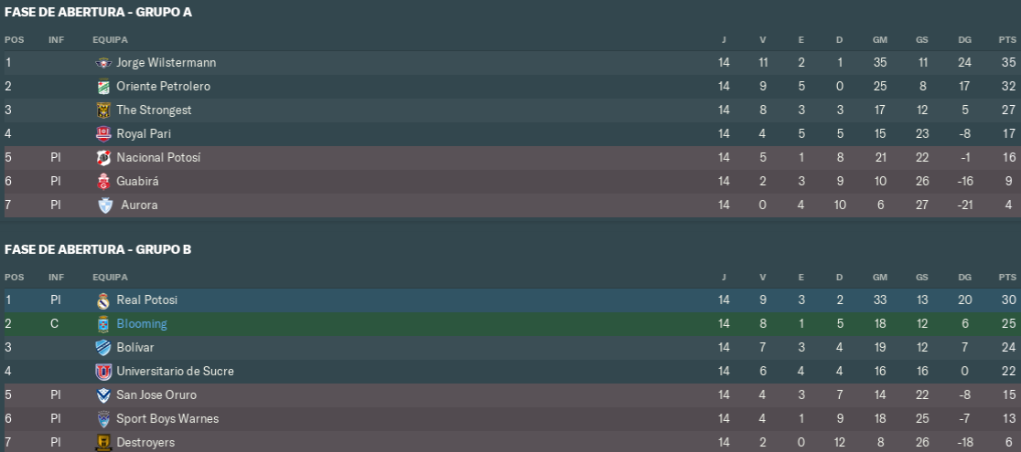 Muitos conhecem a Bolívia mais pela coca do que pelo futebol. Com um futebol nível Série B do Brasil, o campeonato local é do nível de um dos piores países no ranking do futebol da América do Sul a frente apenas da Venezuela. Os maiores clubes bolivianos na ordem de titulo até 2026 eram: Bolívar (24); The Strongest (14); Jorge Wilstermann (7); Oriente Petrolero (7), e; Blooming (6). Tradicionais sacos de pancada, o Bolívar surpreendeu a todos ao ser vice-campeão da Sul-americana perante o Boca Juniors em 2004. O Blooming, penta em 2009, foi hexa em 2021 e agora tentava o hepta para igualar com o seu rival de Santa Cruz de La Sierra (o Oriente Petrolero).