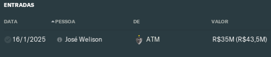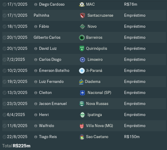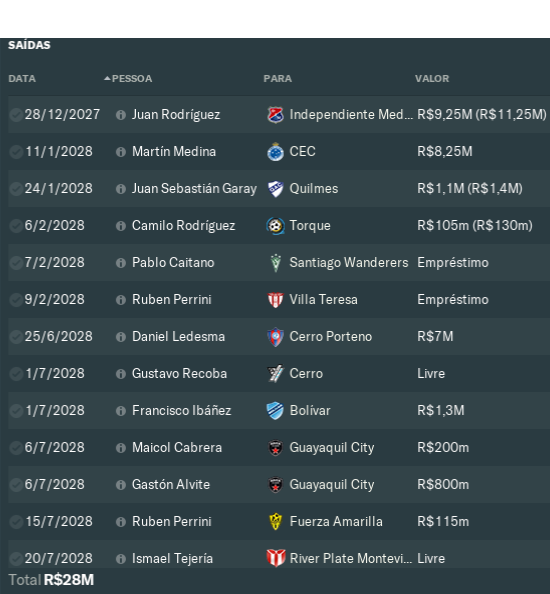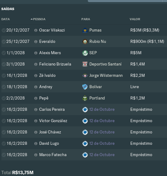 Saíram do clube14 atletas, gerando quase 30 milhões (contando Falcão emprestado ao Rentistas)