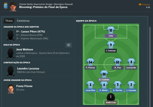 E assim acabamos a temporada campeões e com vaga direta dessa vez para a próxima temporada. Dessa vez Bonfante estava animado pela reação espetacular do segundo semestre, e com esperanças para a Libertadores 2028!