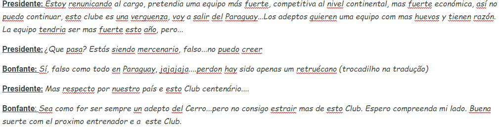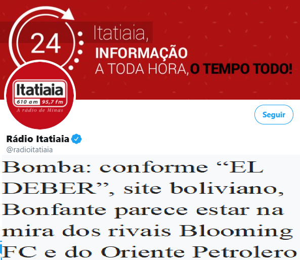 Informação confirmada pela por uma famosa rádio mineira. Inclusive já estaria com proposta formal de ambos. A Direção boveta fica insatisfeita, muito insatisfeita, porém o Blooming paga mais de 800 mil reais de multa e contrata o treinador.