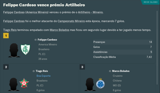 Destaques individuais BOA Esporte: Tiago Reis, vice artilheiro, 6 gols