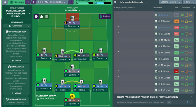 Por fim mudamos as funçoes da tatica usada fora de casa no 4-1-4-1, como jogar com um Avançado Completo em vez de avançado trabalhador.
