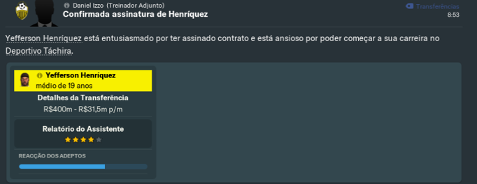 Então para o início da temporada 2029 fui no pequeno Llaneros buscar o talentosíssimo jovem Yefferson Rodriguez. Essa que seria uma das maiores contrataçõe da minha carreira. Posso dizer que roubei ele do adversário pelo preço que pagamos tamanha sua qualidade.