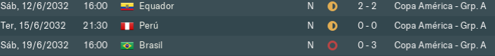 Eliminatórias: Uruguai (F) I Chile (C) I Paraguai (C) I Equador (F) I Colômbia (C) I Venezuela (C)