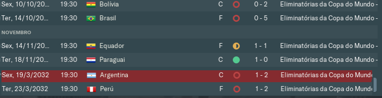O primeiro jogo fora de casa teve uma ligeira superioridade do Brasil e o gol saiu de um jogador que me chamou muita atenção: Toninho, 31 anos, armador que está desde 2018 no Grêmio com impressionantes números mesmo com a carreira indo para o final. Ele cobrou falta e ainda correu para pegar o rebote do goleiro e abrir o placar logo aos 7 minutos. Ainda em Março recebemos na Arena Castelão a Seleção Chilena. Novamente melhor em campo os gols saíram em jogada de escanteio com o zagueiro do Santos, Sérgio e em contra-ataque que terminou no gol do ponta esquerdo Zidane, jogador do Borussia Dortmund. Poise e ainda convoquei um tal de França na outra ponta....vai ver o pai dos garotos gostava da seleção francesa, só pode rs rs. Com muito tempo sem jogos e ainda sem clube para treinar marquei 2 amistosos para condicionar a equipe e ir testando outros jogadores. Num jogo bem equilibrado atuamos melhor e vencemos Senegal no "Estadio do Vitória" em Pernambuco. No estadio do Kashima Antlers foi um bombardeio, vencemos por 2x0 o Japão mas poderia ter sido muito mais. Atuamos no 4231 em casa e no 4141 fora. Aí em Julho eu fechei com o River Plate (contarei no próximo post). No mês de Agosto tivemos a disputa do Super Clássico das Américas realizado no Catar dessa vez e foi um espetáculo, um grande jogo onde o Brasil saiu na frente levou a virada e somente nos acréscimos fez o gol do titulo. Com 9 titulos de cada lado o Superclassico era um tira-teima, melhor para nossa Seleção que agora marca 10x9 nas conquistas de Superclassicos.