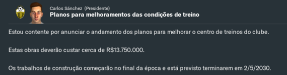 Quase 14 milhões investidos na melhoria do Centro de Treinamentos (além de mais 350 mil na analise de dados)