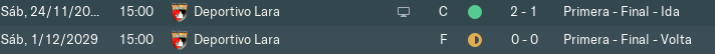 Com o declinio de produção do atacante Gutierrez (comparado a fase de grupos) fui para a primeira partida da final com Guevara no ataque e deu muito certo . Numa grande final (13 chutes a 10) vencemos por 2x1 os larenses na ida como gol de Romero e (Daniel) Guevara.