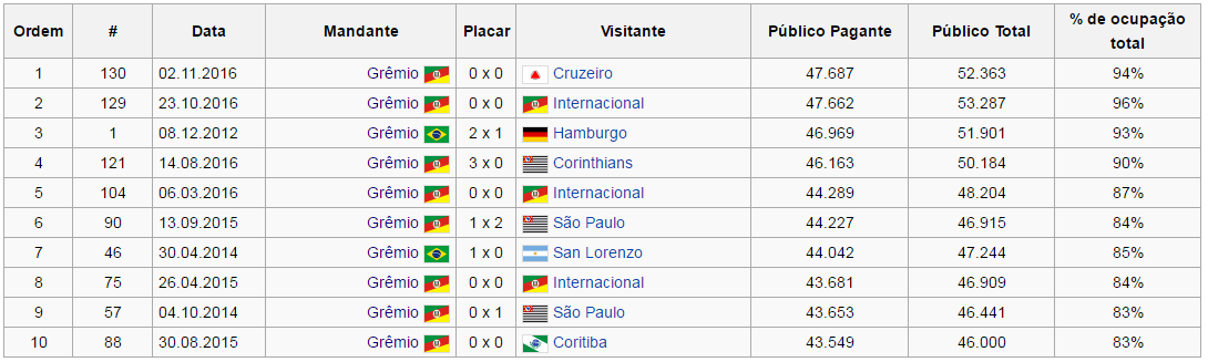 Hazel Postado 7 de Dezembro 2016 Denunciar Postado 7 de Dezembro 2016 10 maiores públicos da Arena (hoje deve bater o recorde) e vejam bem SÓ FIASQUERA E AUSÊNCIA DE VITÓRIAS. Vitória só contra o Hamburgo (AMISTOSO) e Corinthians. Contra o San Lorenzo caimo nos penaltis. Se a gente não for patrolado hoje, ganharemos o titulo perdendo (tipo aquele gauchão). Pra ficar tudo cada vez mais patético. Citar
