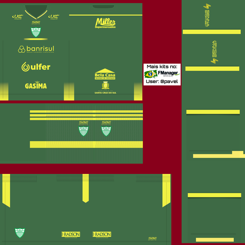 Boa sorte no save, e boa sorte pra eles na Série D esse ano. Pra ver mais detalhes das camisas, eu vi uns jogos deles do Gauchão, e eles deram trabalho pro Inter e pro Grêmio. Venceram o Novo Hamburgo, que está na parte de cima da tabela.. parece que tá bom, o time. Só tendo pouca sorte, como na derrota para o São Luiz (não vi tudo, só as partes onde dava pra ver os uniformes).