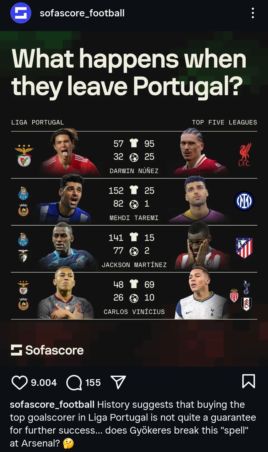 Já já o Gyokeres entra nessa lista aí também, hahahahahaha! Fdp.
