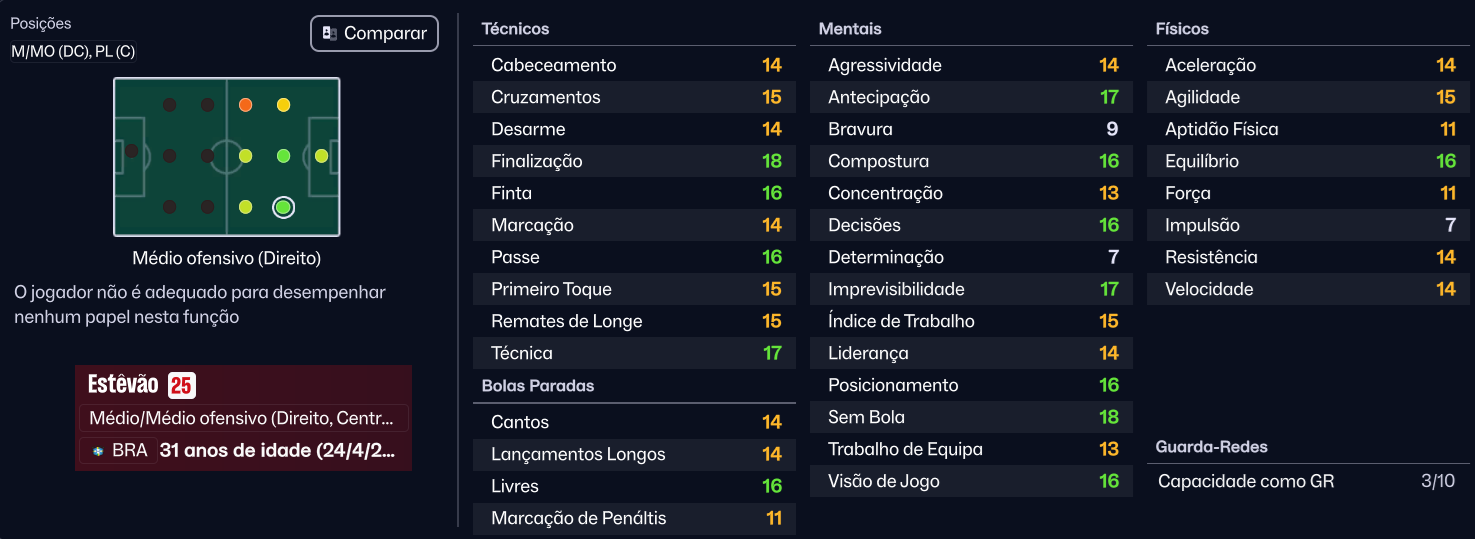 André Luiz, o maestro dos Reds, foi o jogador mais consistente do campeonato, terminando com uma nota média de 7.69, provando ser o motor criativo da equipa. Já Amorim destacou-se como o principal "garçom" da liga, servindo os avançados com uma precisão cirúrgica.