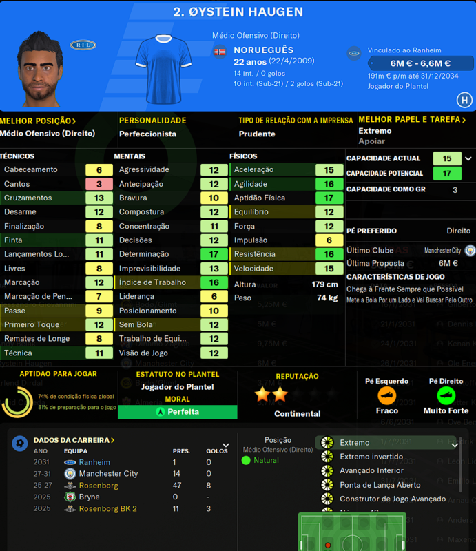 Como fã de saves de clube (e o teu com o Ranheim é bem interessante), gostaria de ver a permanência na Noruega. Mas o Aston Villa seria uma proposta quase irrecusável.