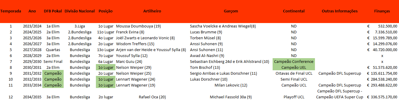 As contratações pontuais nas alas foram inteligentes, equilibrando juventude e experiência, e mesmo com a queda precoce nas copas, o crescimento na Bundesliga é o maior troféu moral possível. A base está montada — com Oca e Fassold liderando a linha de frente e Fabio Teixeira comandando lá atrás — agora é apenas lapidar.