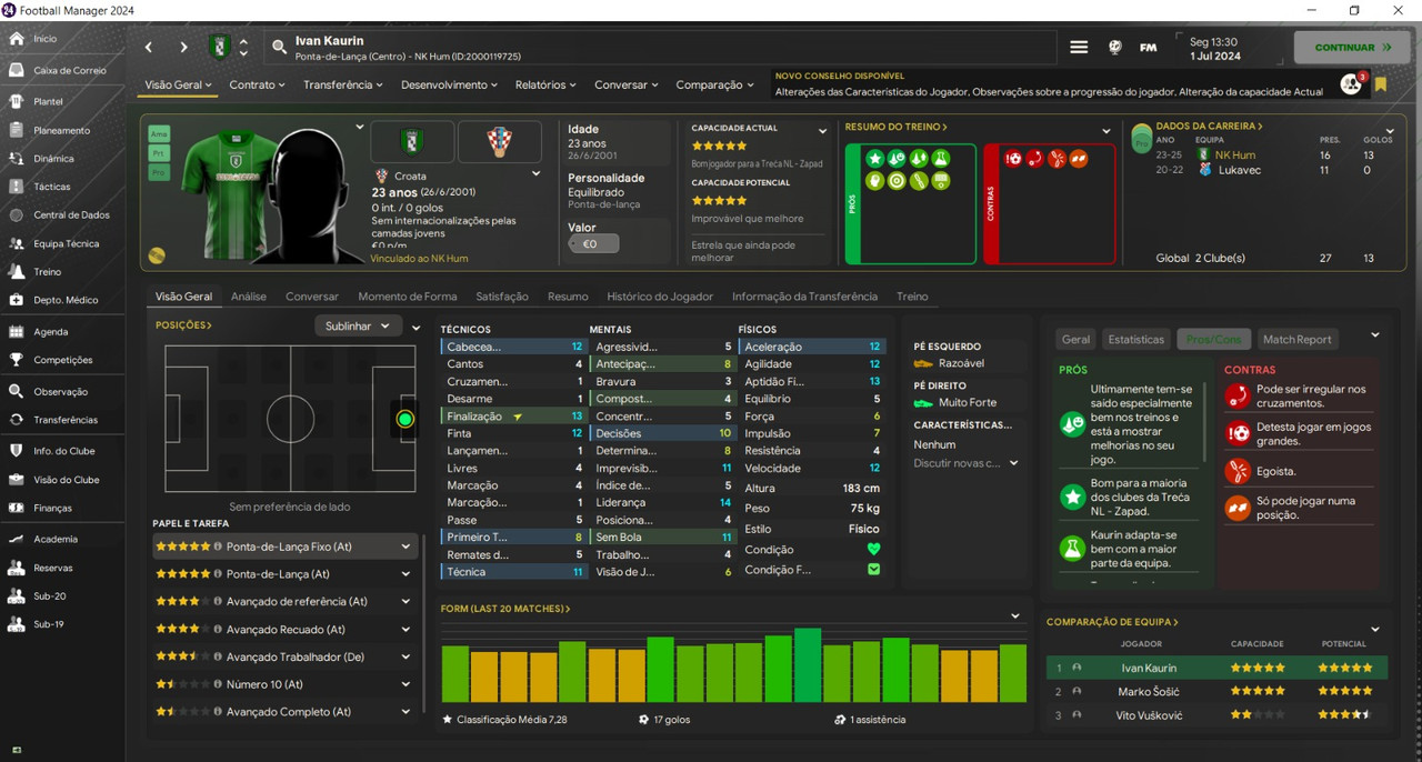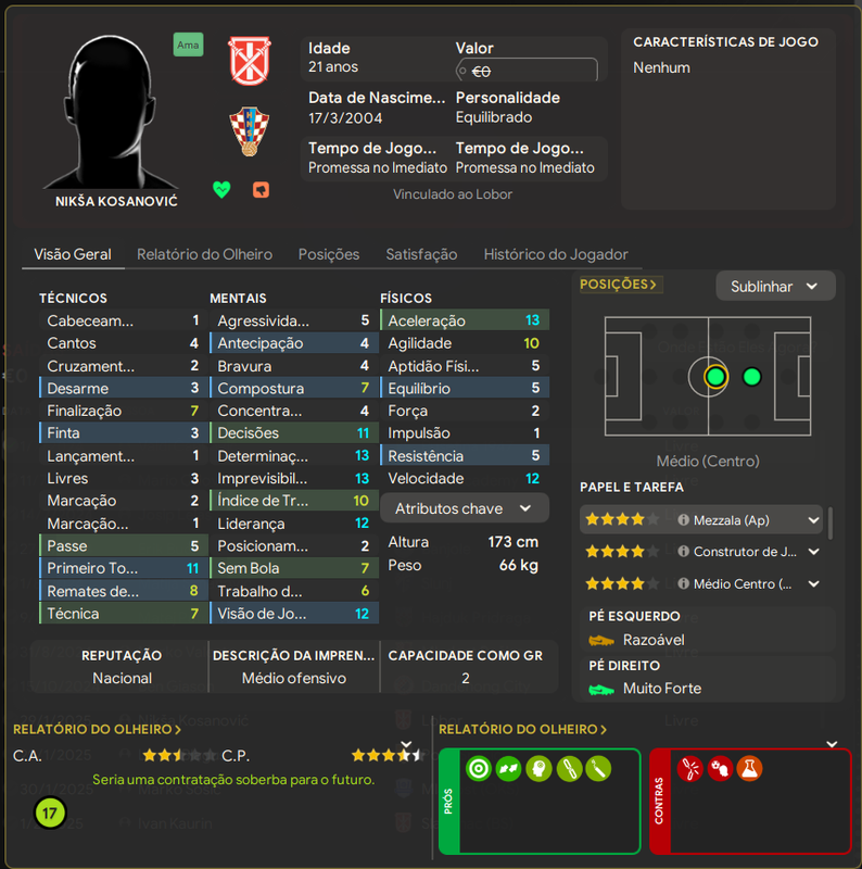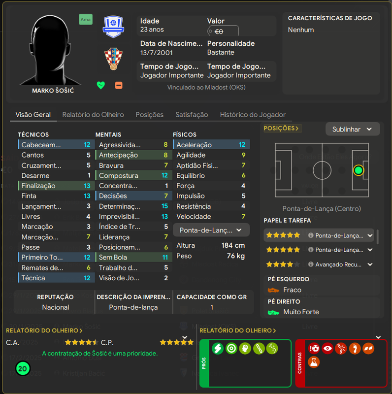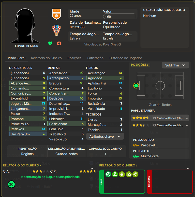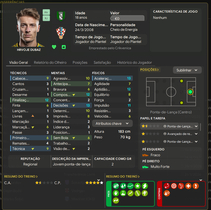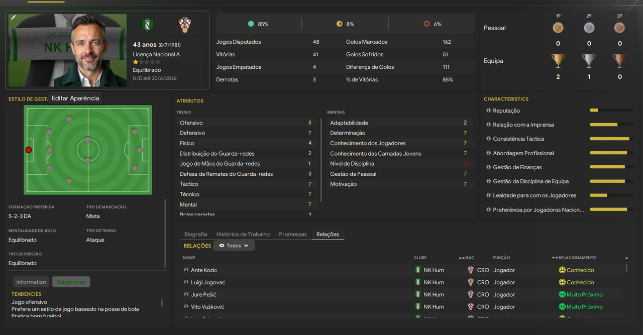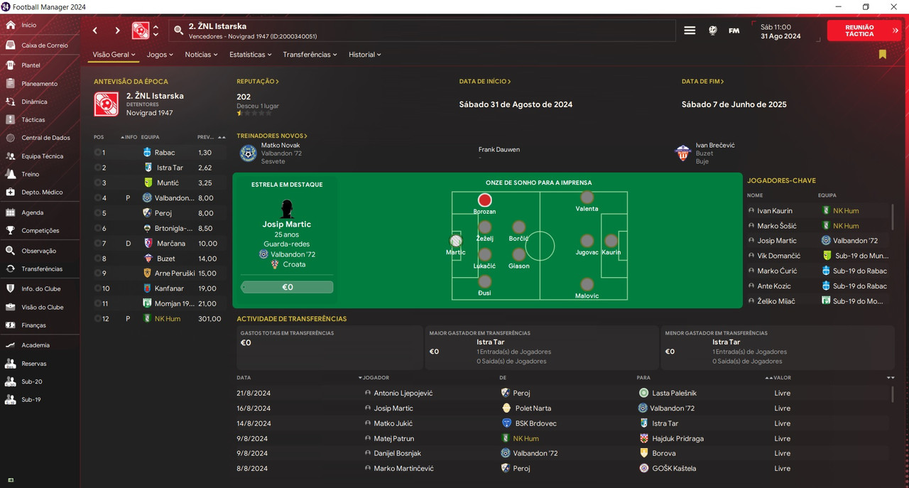 O título da 3. ŽNL Istarska não nos deu 1 centavo, mas a diretoria nos alçou aos estatus de Semi-profissional. Isso deverá impactar nas novas contratações do clube. e, acho que como forma de homenagear o amigo @mfeitosa, (uma vez que seu Calavera teve uns 8752 presidentes diferentes ao longo do save) o clube teve uma nova aquisição (mesmo eu tendo marcado para não haver aquisições futuras), então na parte ficcional do save tratarei isso como a troca do CEO! Finjam surpresas quando o novo for anunciado!