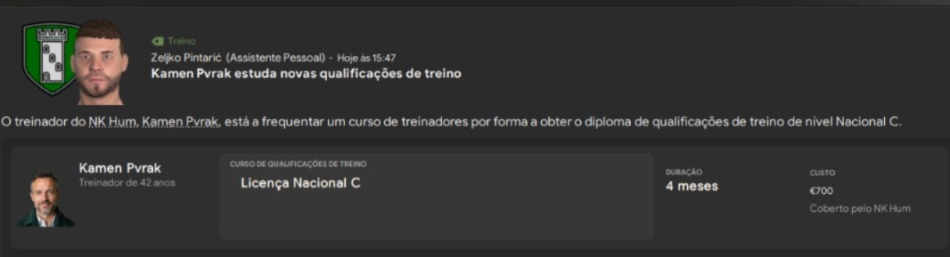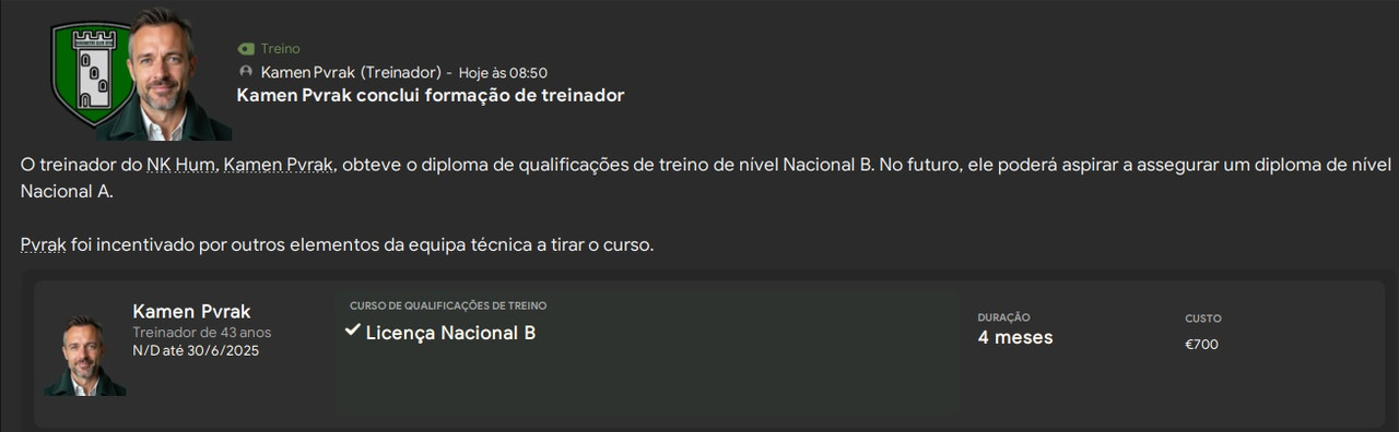 Já vai vendo os lances das licenças de treinador sempre que possível mesmo, porque isso aí pode ser chato evoluir principalmente se o time não tiver grana.