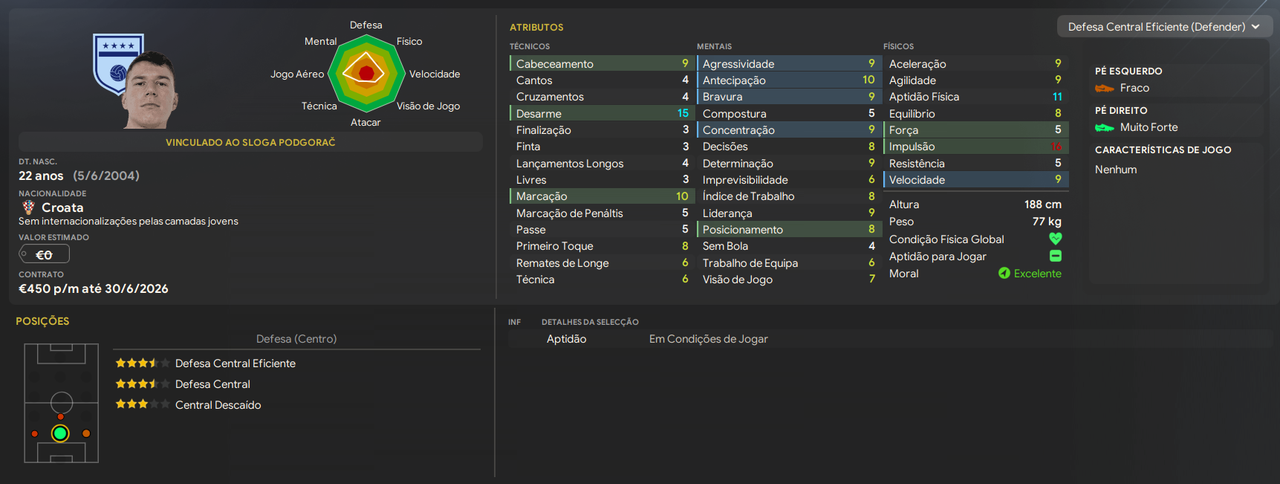 O zagueiro de 1,88 cm, isso mesmo, zagueiro, comprado ao término de seu contrato com o Uljanic, foi o responsável por 5 tentos (todos de cabeça, completando escanteio no primeiro pau) e foi alçado à condiçã de titular por Kamen Pvrak já no seu 3º jogo pela equipe.