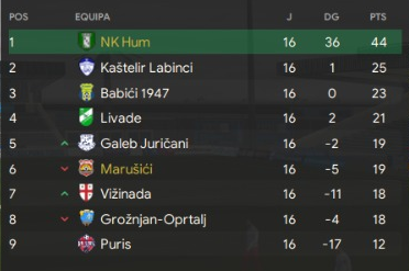 Antes da neve, o Hum já dominou a competição, porém após a parada de inverno (de março a junho), o NK Hum viveu uma sequência de jogos que misturou drama, goleadas e superação. Destaques: