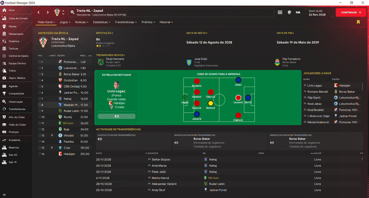 A partida de estreia era contra o outro time dominante da região, o Istra Pula e na casa deles! Mas a equipe de Kamen e seu 5-2-3 não tomou conhecimento e mostrou que começa a mandar na região.