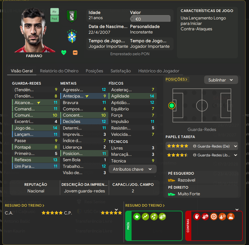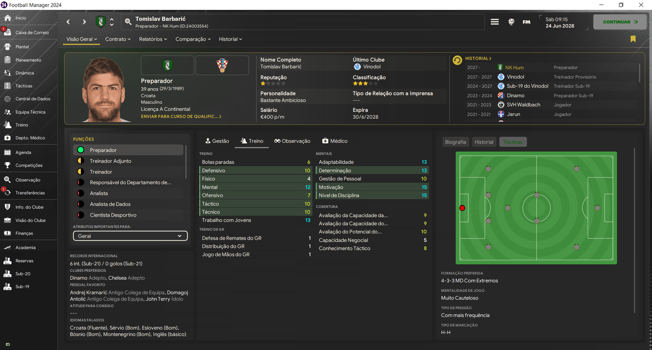 Fala @Fernandinhobol, eu tenho uma boa quantidade de preparadores no time, o problema é a qualidades daqueles que desejam vir. Em relação à tática, estou estudando a possibilidade de mudar pra 4 zagueiros e preencher o meio campo, quem sabe um 4-2-3-1 (apesar de não curtir extremos).