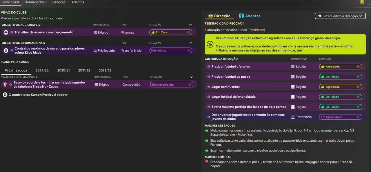 A um tempo sem acompanhar já vejo que o Hum já chegou a quarta divisão. E imagino que o caminho até lá foi fácil, e somente agora o clube está tendo um pouco de dificuldade de performar da melhor forma. O bom que isso adiciona desafio ao save. Já é a segunda temporada na quarta divisão?
