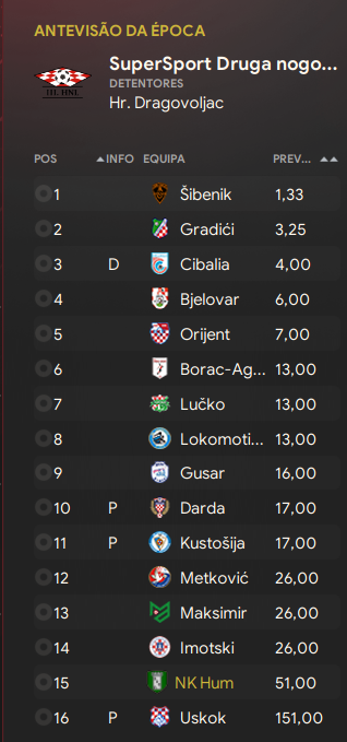 Nesse cenário, o NK Hum enfrentou o RNK Split. A equipe foi a campeã da região sul com 20v, 6e, 4d. Com 44 gols feitos e apenas 20 sofridos. A partida de ida seria jogada no Glagolitika e a volta em Split.