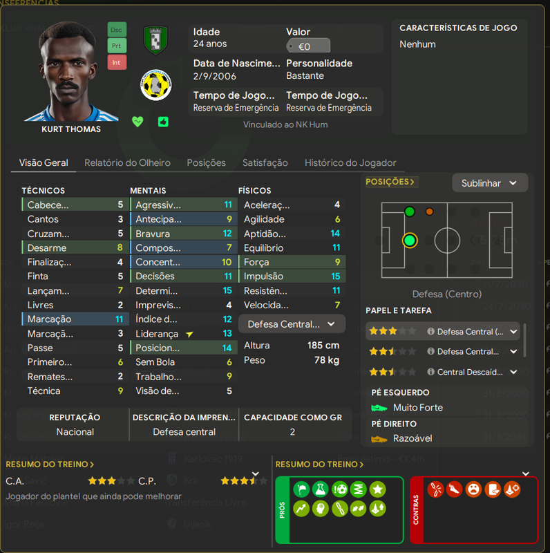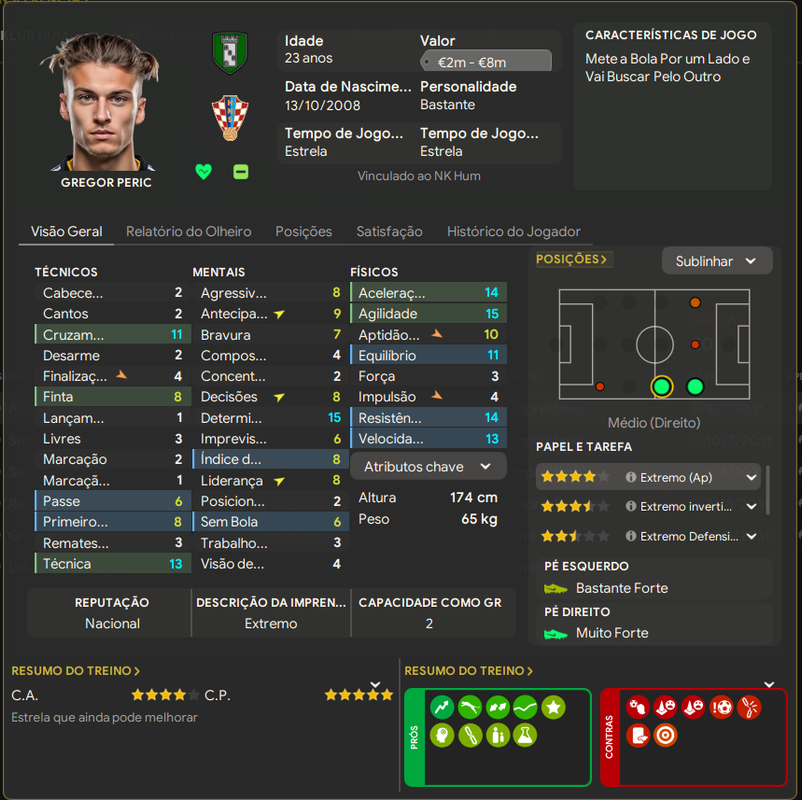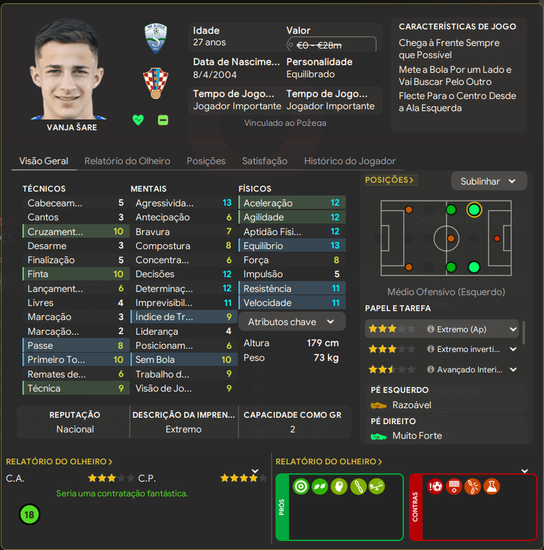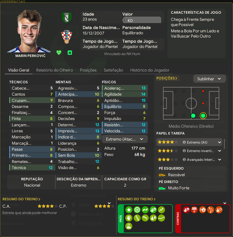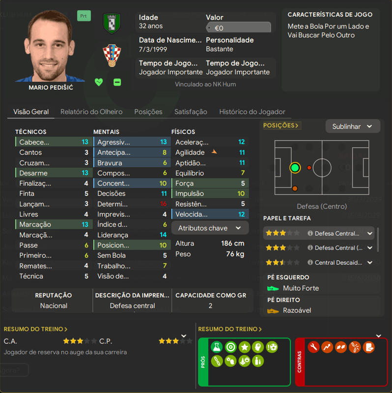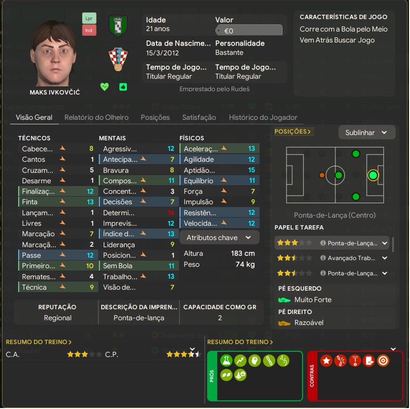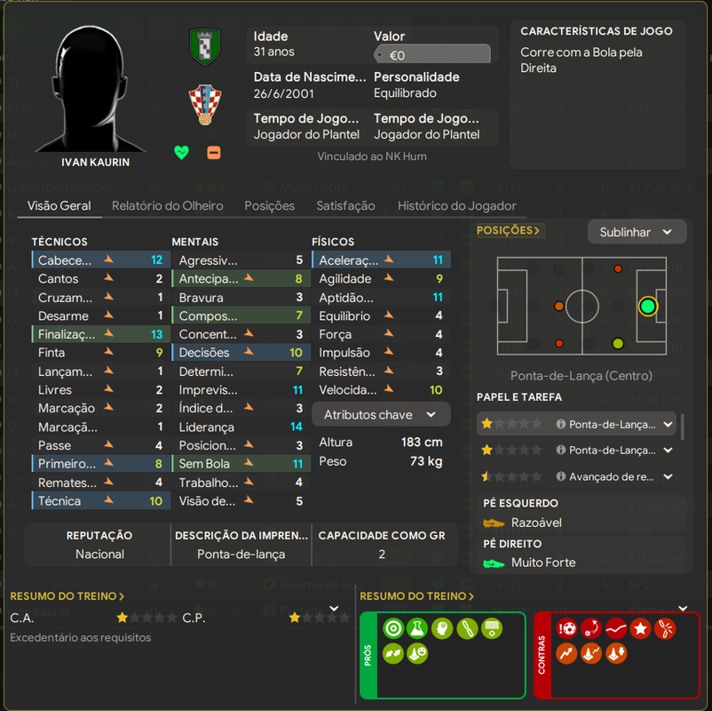 Ivikovcic é um ótimo jogador pra divisão, o usei menos pq Kaurin contava com a confiança do treinero e como pode ver entrou em um declínio muito rápido de atributos.